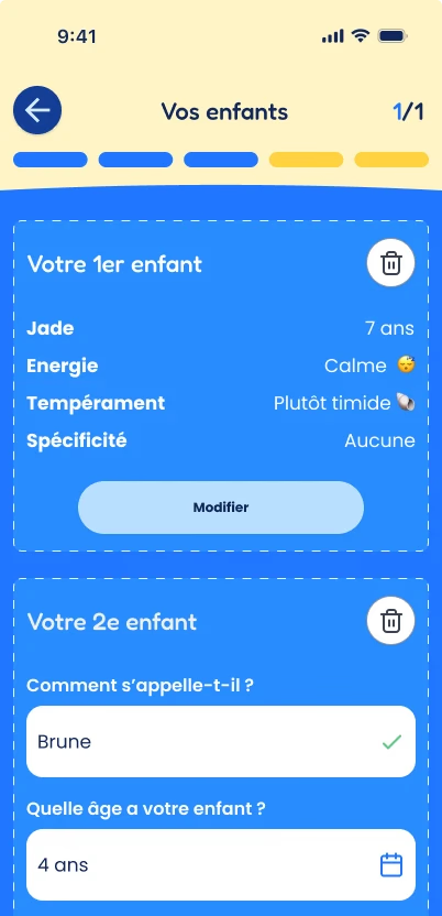 Remplis tes informations en quelques clics : localisation, nombre dâenfants, Ăąges, tempĂ©raments...etc.