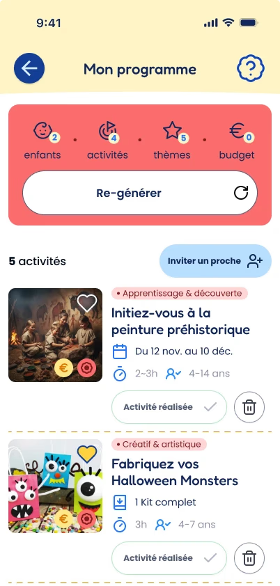SĂ©lectionne les thĂ©matiques qui tâintĂ©ressent, ton budget, le nombre dâactivitĂ©s souhaitĂ©es...etc.
